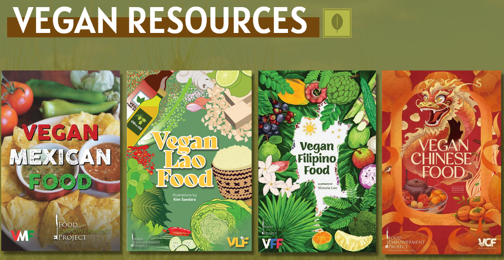 Did you know that F.E.P. has created four cultural recipe sites and booklets? Vegan Mexican Food, Vegan Filipino Food, Vegan Lao Food, and Vegan Chinese Food were all inspired by members of F.E.P.’s staff and board as well as our commitment to providing vegan resources that reflect the ethnic and cultural diversity of these vibrant communities.